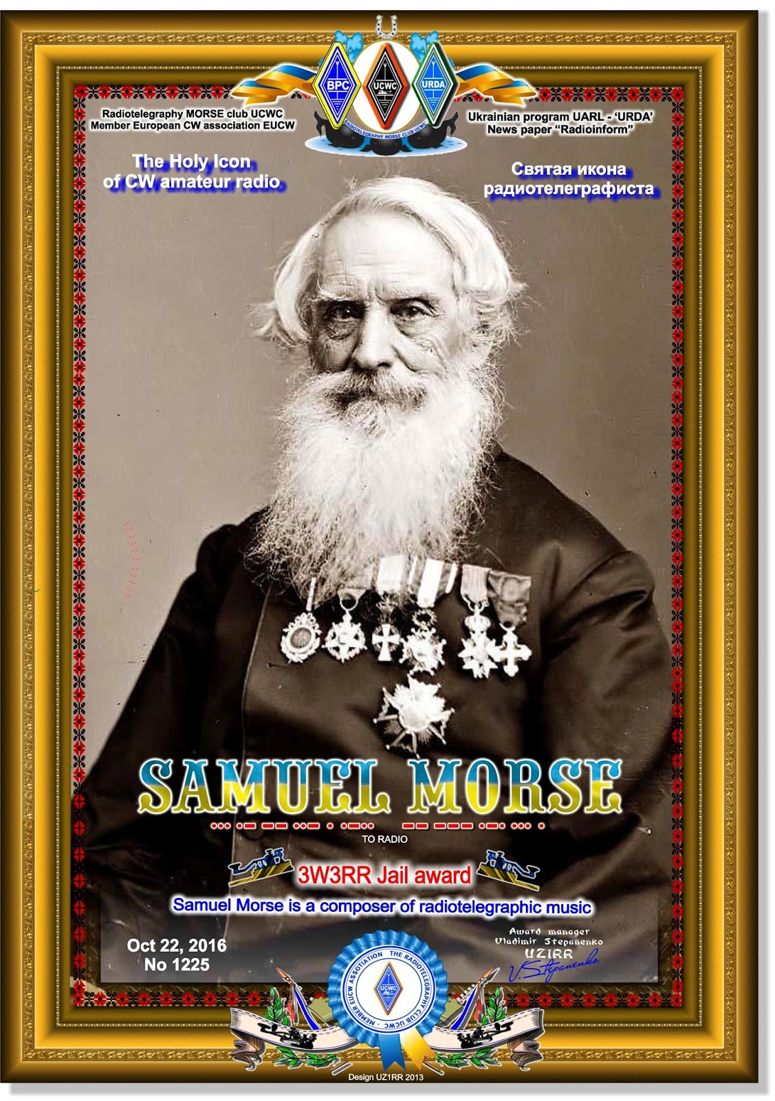 - Володя, UA9FAR, как Виночерпий, раздаст всем по стакану (можно даже с пермской водкой, настоянном на трофее с острова Ионы), и один стакан нальет для Сэмюэля Морзе, рядом с его портретом.